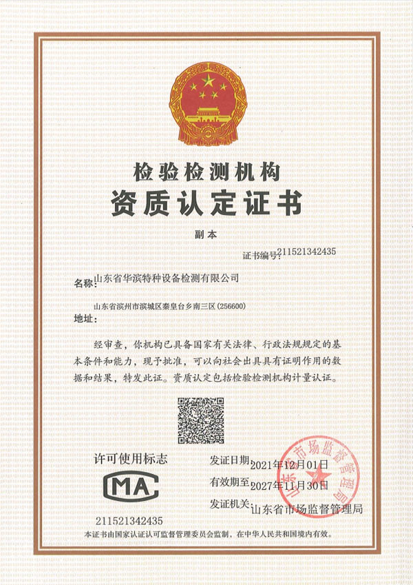 華濱檢測(cè)下設(shè)山東省華濱特種設(shè)備檢測(cè)有限公司、山東省華濱計(jì)量檢測(cè)有限公司。